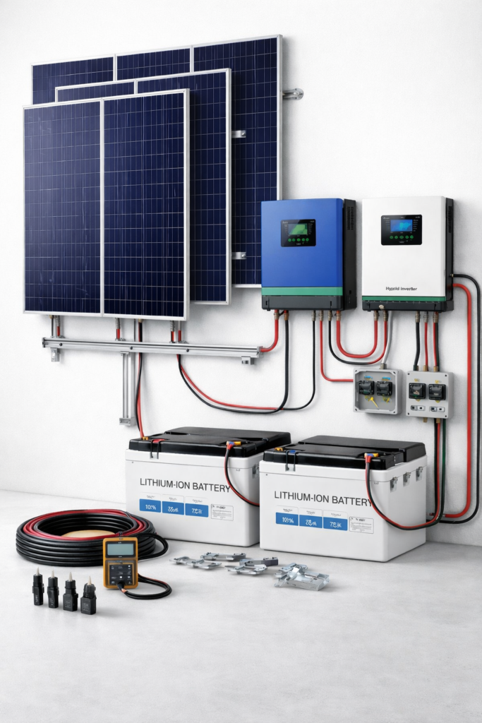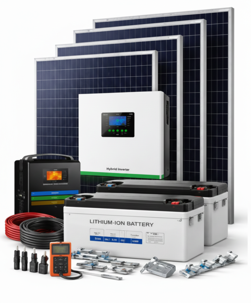توفر ڤولتيرا أنظمة شمسية متكاملة جاهزة للاستخدام، تشمل الألواح الشمسية، المحولات، البطاريات، هياكل التثبيت، والكابلات، مع ضمان الأداء المستقر والجودة العالية. هذه الأنظمة جاهزة للتركيب في المنازل، الشركات، والمزارع، لتقديم حل شامل وموثوق للطاقة الشمسية دون الحاجة للتجميع أو التصميم المعقد.