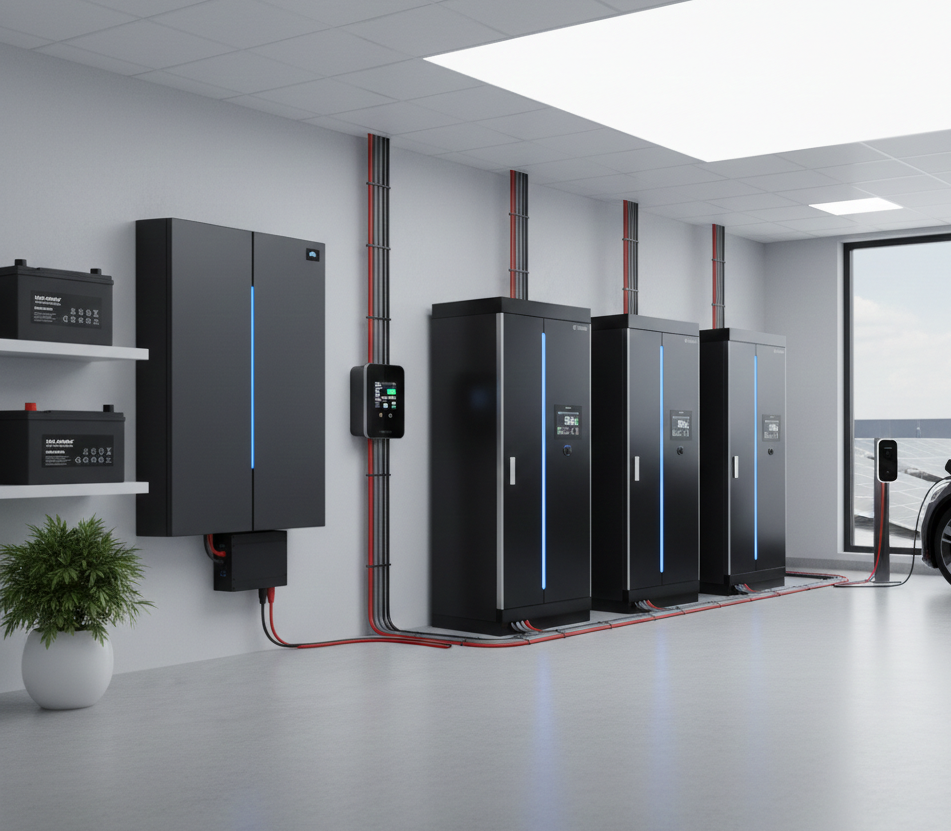 توفّر أنظمة تخزين الطاقة حلاً عمليًا لضمان استمرارية التشغيل والاستفادة القصوى من الطاقة الشمسية المنتجة. تعمل البطاريات على تخزين الطاقة لاستخدامها عند الحاجة، سواء خلال فترات انقطاع الكهرباء أو في أوقات انخفاض الإنتاج.
